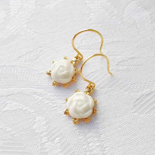 Mini Porcelain Moonlight Rose Drop Earrings