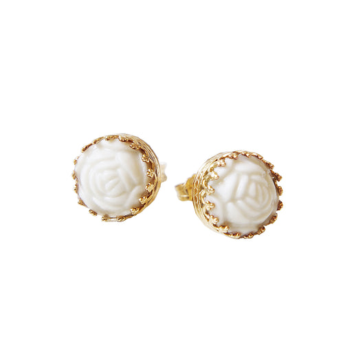Mini Round Porcelain Rose Gold-Filled Stud Earrings