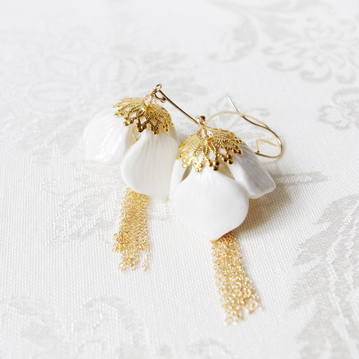 Porcelain Camellia Yellow Brass Book Locket Earrings Porcelain Camellia Yellow Brass Book Locket Earrings Porcelain Camelli $144.50