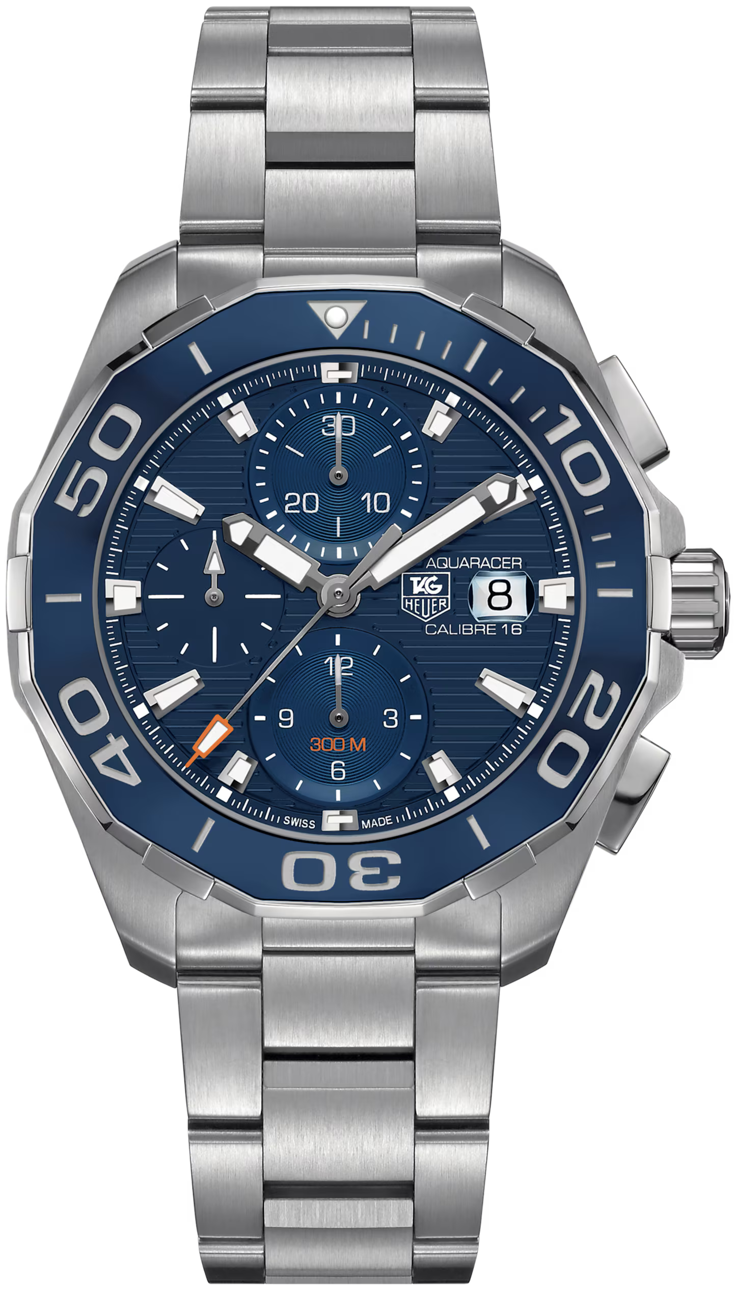 The TAG Heuer Aquaracer (Model CAY211B.BA0927) is a Swiss-made 43 mm steel watch designed for both elegance and performance. Powered by the Calibre 16 Automatic movement, it features a turning bezel, a blue dial, and a stainless steel strap, making it a versatile timepiece for diving or daily wear. This watch is water resistant up to 300 meters, ideal for adventurous activities.