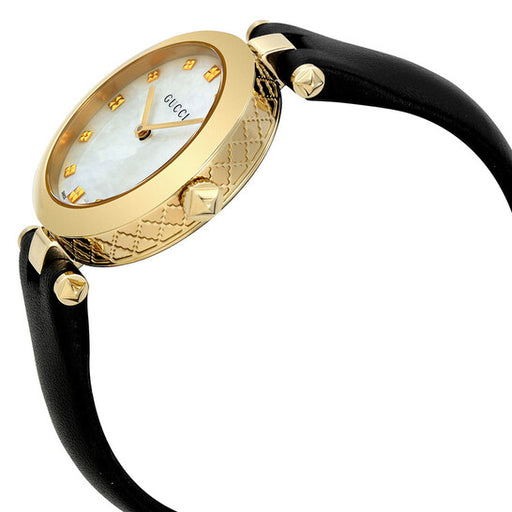 GUCCI DIAMANTISSIMA 27mm Yellow Gold PVD White Mother-of-Pearl Leather Watch