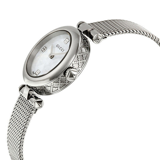 GUCCI DIAMANTISSIMA 27mm White Mother-of-Pearl Dial Steel Mesh Watch
