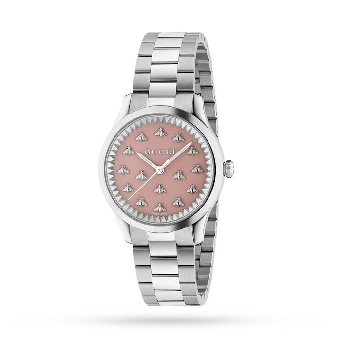 GUCCI G-TIMELESS 32mm Pink Lacquer Dial Bee Steel Women’s Watch
