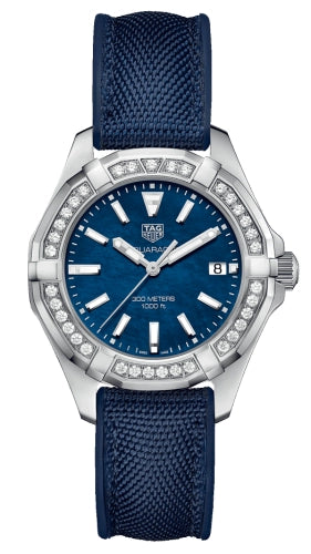 TAG Heuer WAY131P.FT6092 Aquaracer Lady 300M 35MM Black Mother of Pearl Dial Diamond Fabric Strap