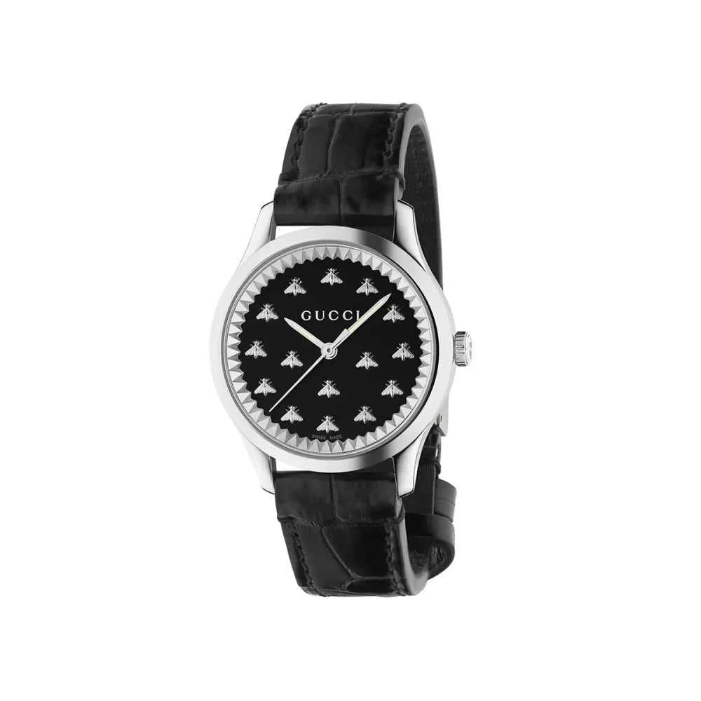 GUCCI G-TIMELESS 32mm Black Onyx Dial Bee Black Alligator Watch