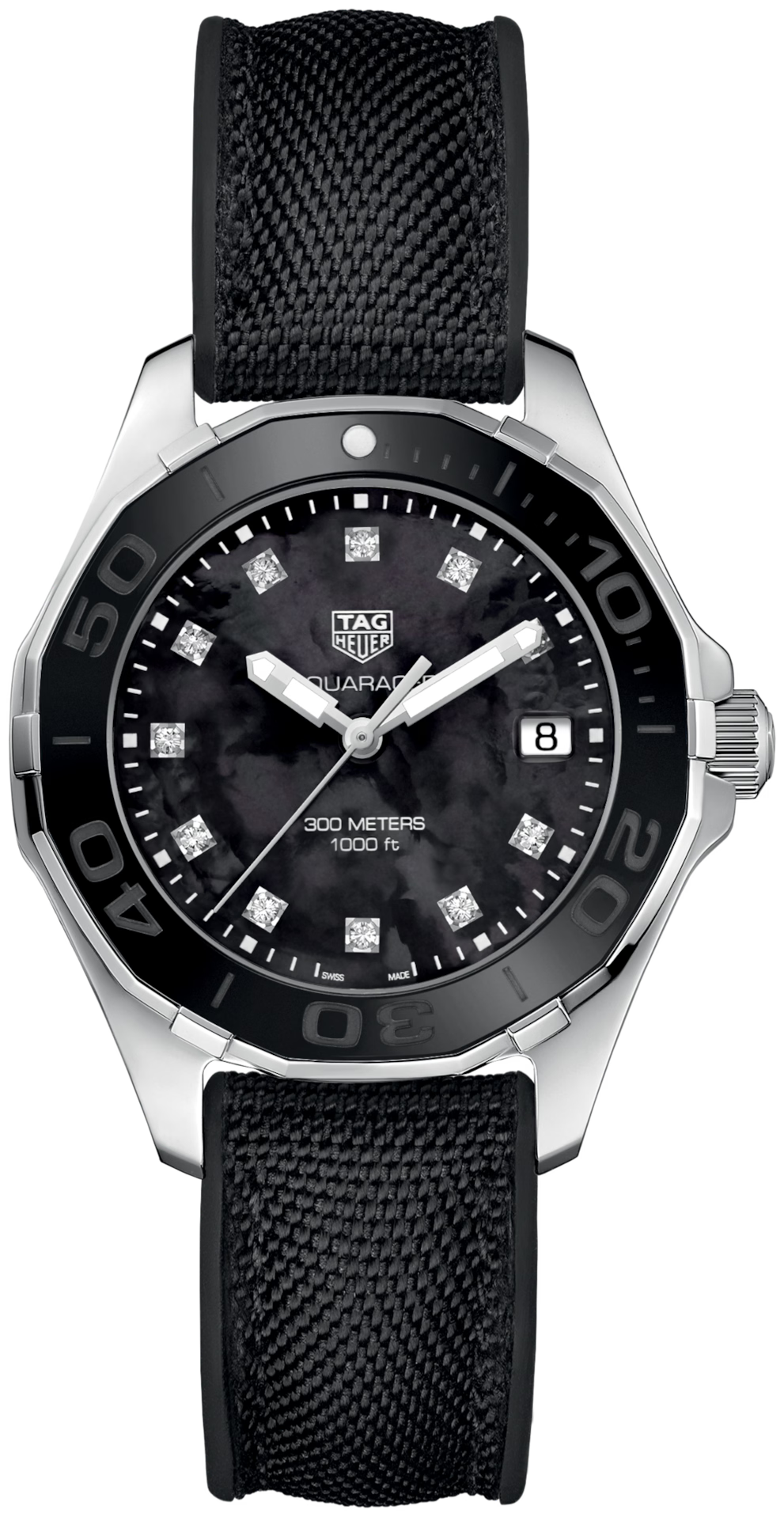 The TAG Heuer Aquaracer Quartz (Model WAY131M.FT6092) is a refined and sporty women’s timepiece designed for both elegance and performance. Featuring a 35 mm polished stainless steel case, this watch showcases a sleek black dial accented with 11 diamonds for a subtle touch of luxury. Powered by a precise Swiss-made quartz movement, it offers reliable timekeeping along with a unidirectional turning bezel and a screw-down crown. With water resistance up to 300 meters, this watch is built for active lifestyles, while the black rubber strap with gum-effect finish and folding steel clasp ensures comfort and modern style.