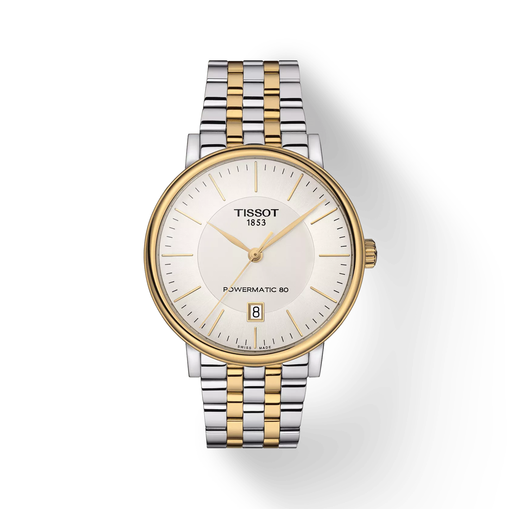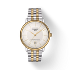 The Tissot Carson Automatic (Model T122.407.22.031.00) is a timeless men’s watch designed to suit any occasion. Its silver dial features elegant indexes and refined hands, complemented by a grey and yellow gold 1N14 PVD-coated stainless steel bracelet with butterfly clasp. The 40 mm stainless steel case with yellow gold PVD coating and see-through caseback houses a Swiss automatic movement with up to 80 hours of power reserve. Scratch-resistant domed sapphire crystal and 50 m water resistance ensure durability and classic style.