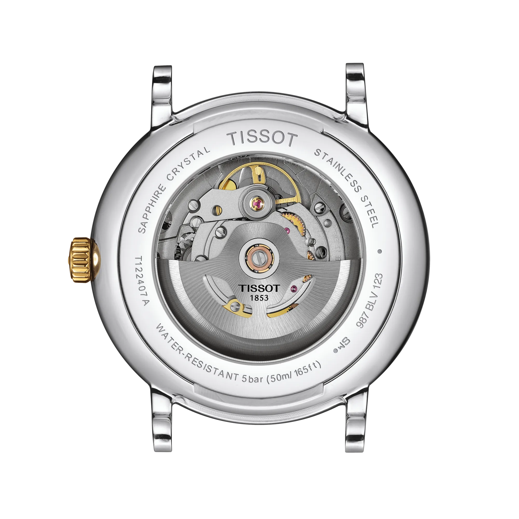 Material: 316L stainless steel case with yellow gold PVD coating