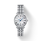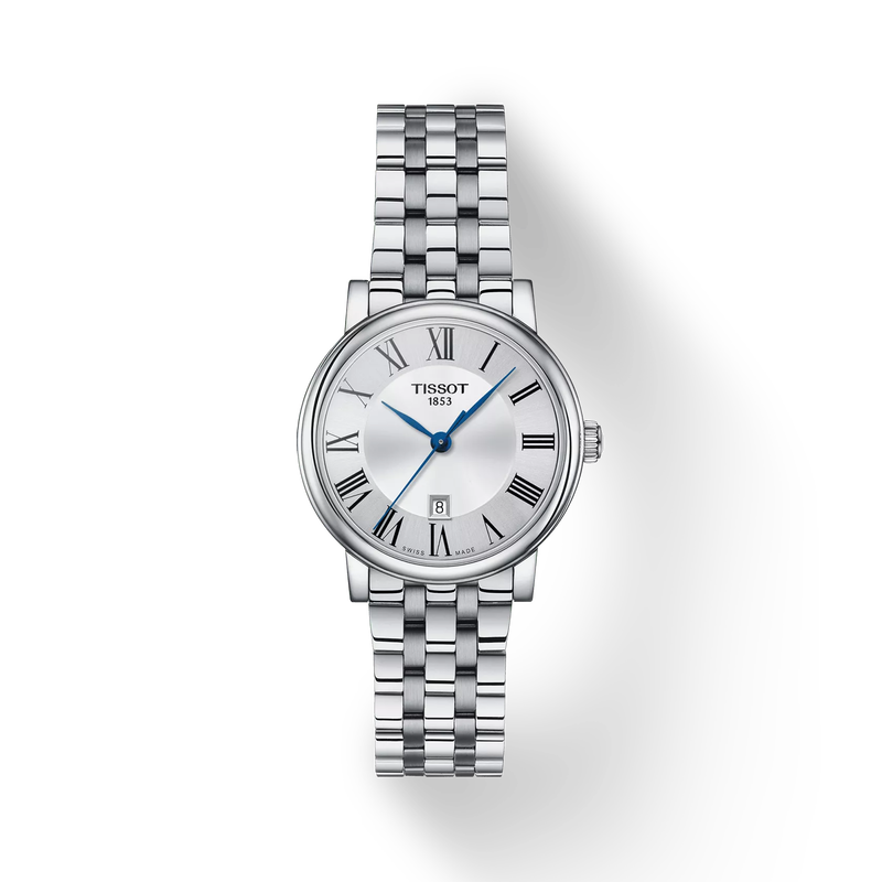 The Tissot Carson is a timeless, elegant watch designed to suit any occasion. Featuring a silver dial with Roman indexes and a slim 30 mm 316L stainless steel case, this Swiss-made quartz timepiece combines classic style with reliable functionality. With a scratch-resistant sapphire crystal and a grey leather strap with butterfly clasp, it’s perfect for everyday wear or formal settings.