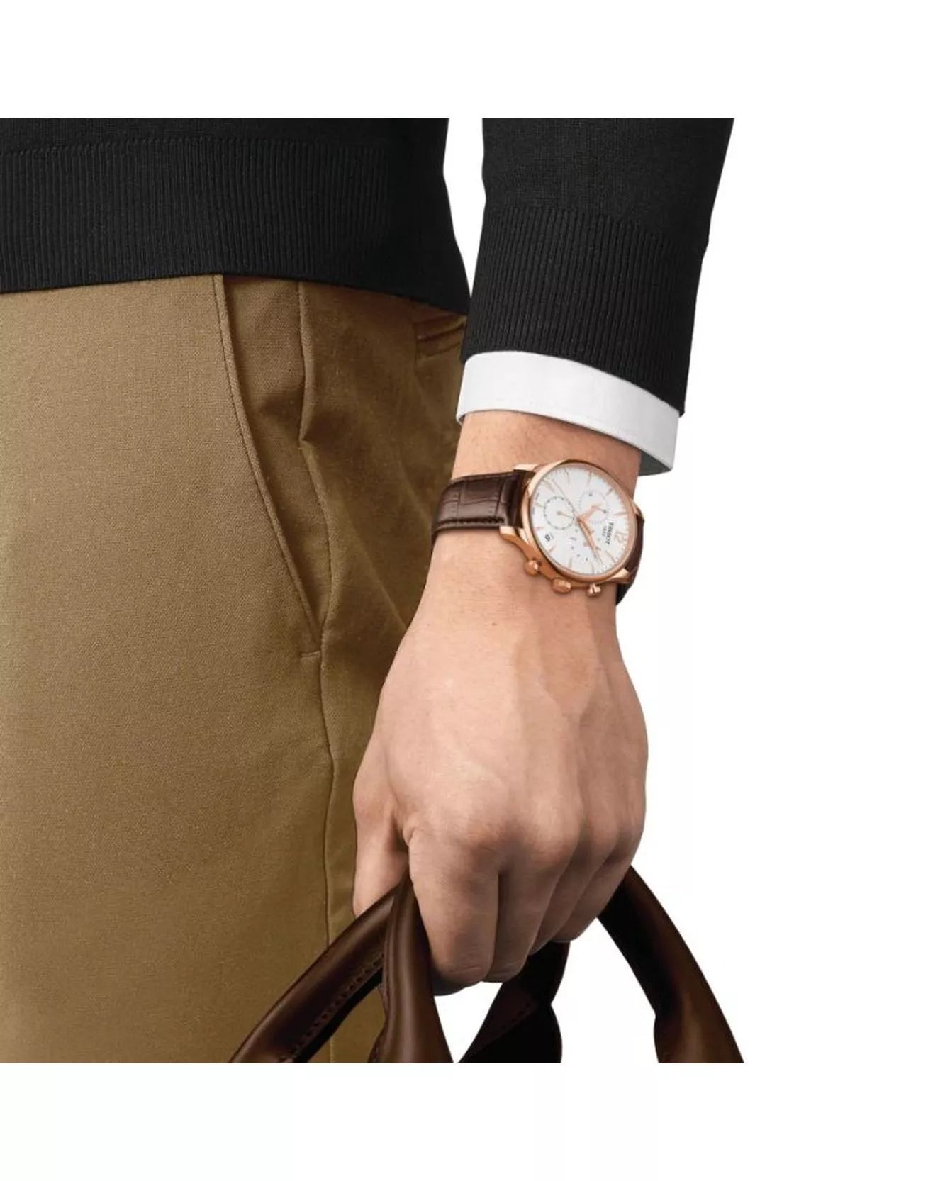 The Tissot Tradition Chronograph (Model T063.617.36.037.00) combines classic design with Swiss precision. Featuring a 42 mm stainless steel case with PVD gold-plating and a silver dial, this watch exudes elegance. Powered by a Swiss-made ETA G10.211 quartz chronograph movement, it offers accurate timekeeping and a day-of-the-month date function. Completed with a brown leather strap and scratch-resistant sapphire crystal, it is a sophisticated timepiece suitable for everyday wear or special occasions.