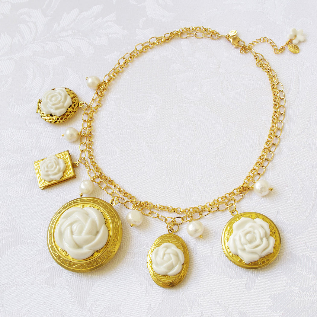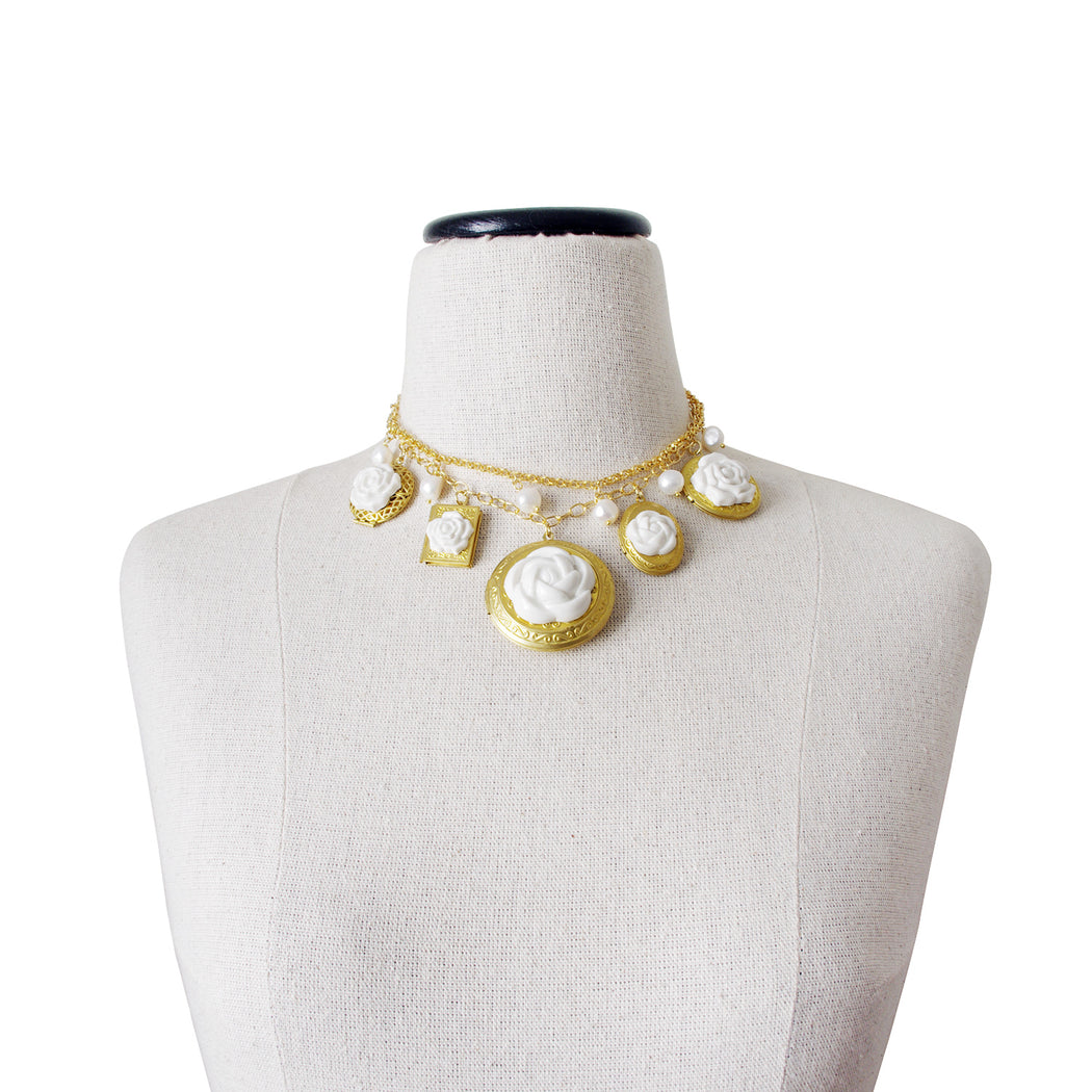 Porcelain Floral Lockets Statement Necklace