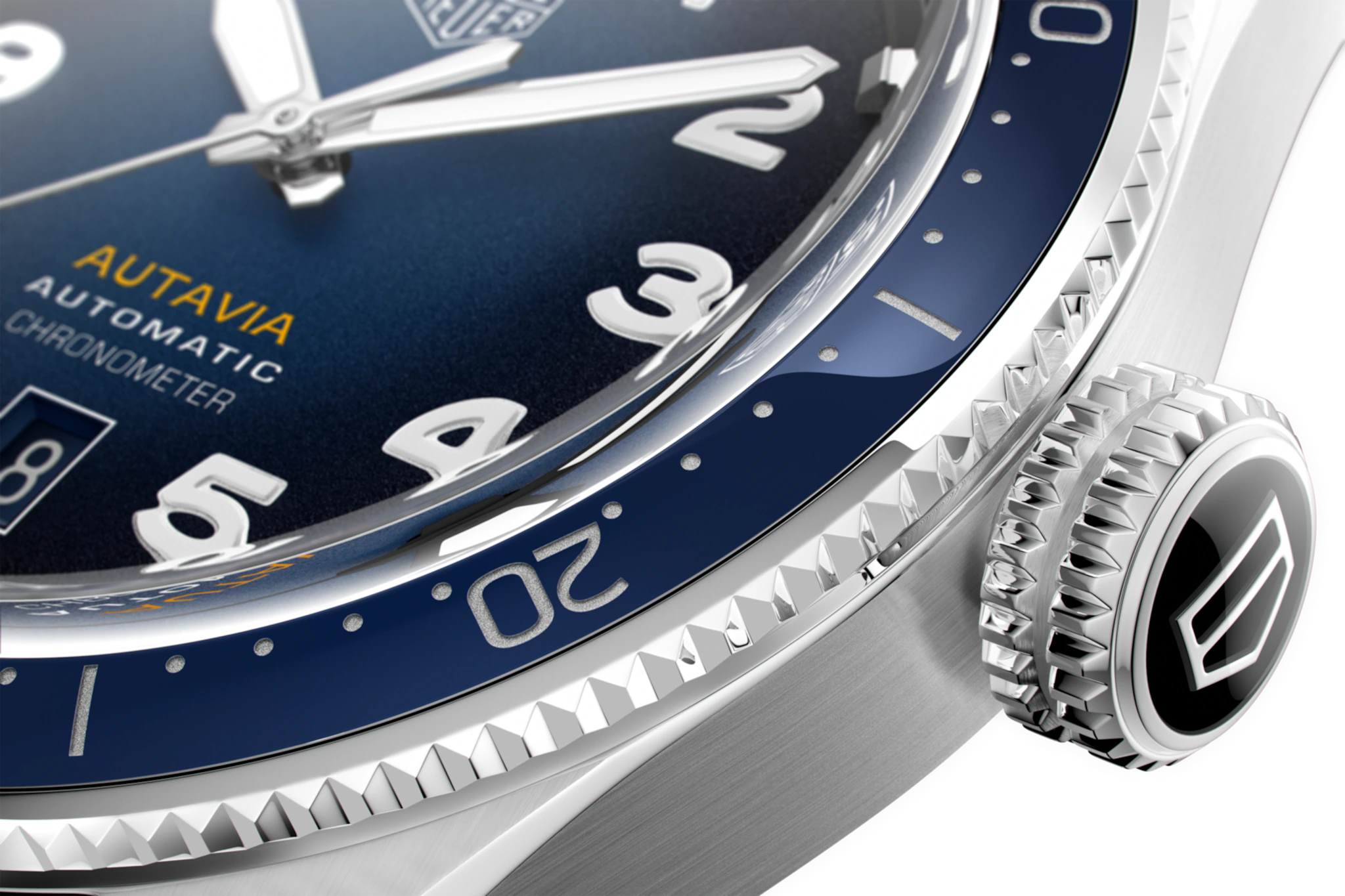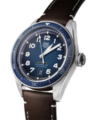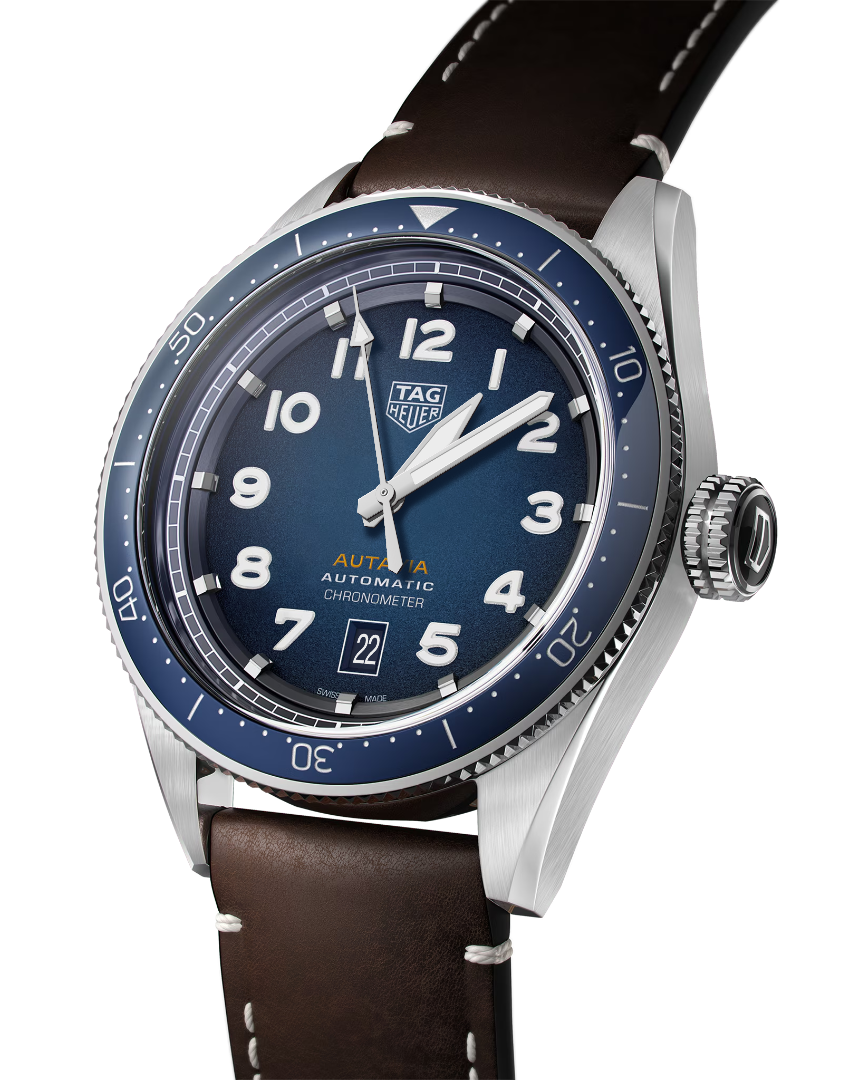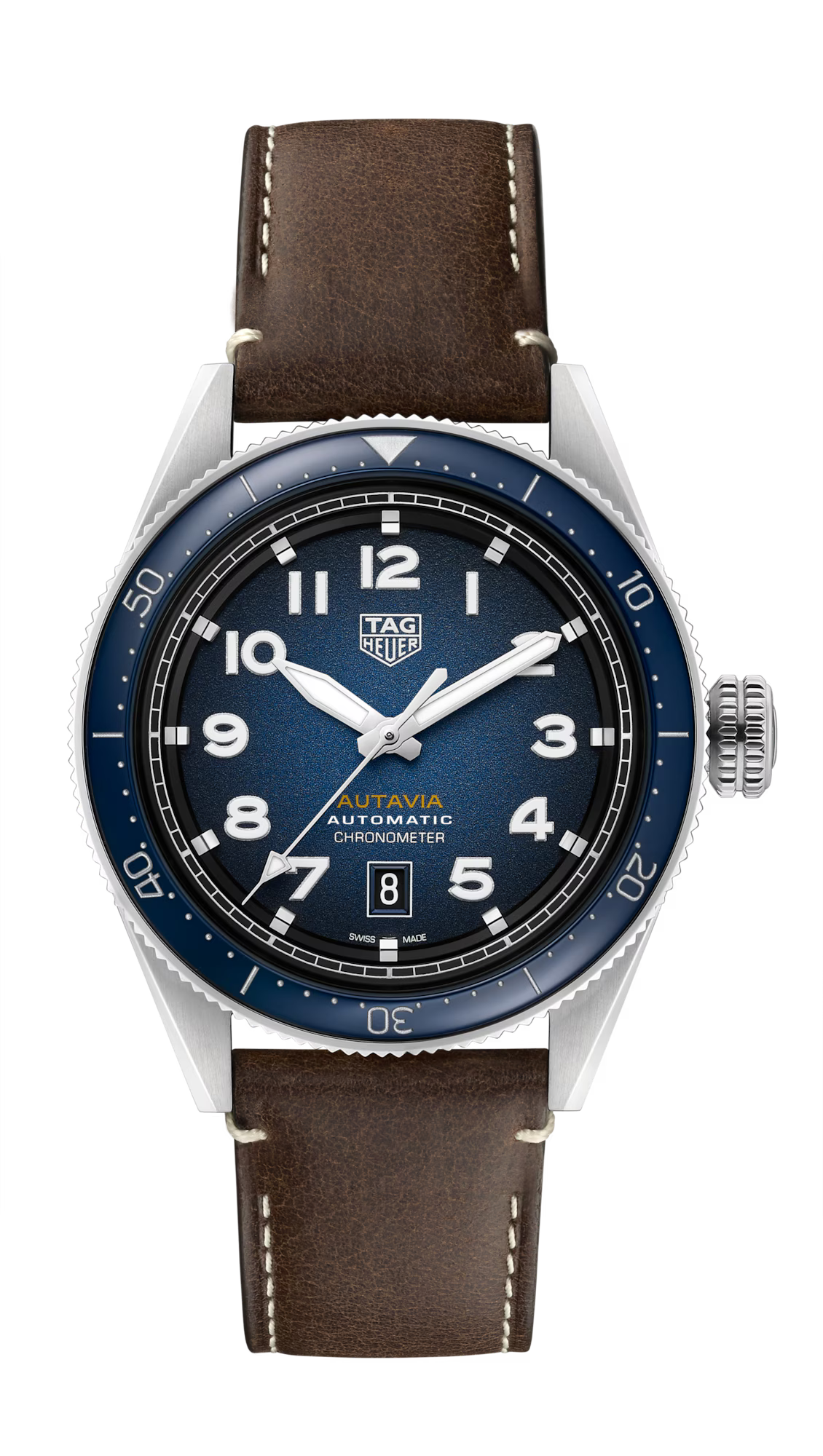 The TAG Heuer Autavia WBE5116.FC8266 is a classic pilot’s watch with vintage charm. Its 42 mm steel case houses a gradient smoked blue dial that remains legible day and night. Powered by the COSC-certified Calibre 5 automatic movement, this timepiece delivers precise hours, minutes, and seconds. Featuring a brown leather strap and steel & ceramic turning bezel, it blends rugged durability with timeless style.