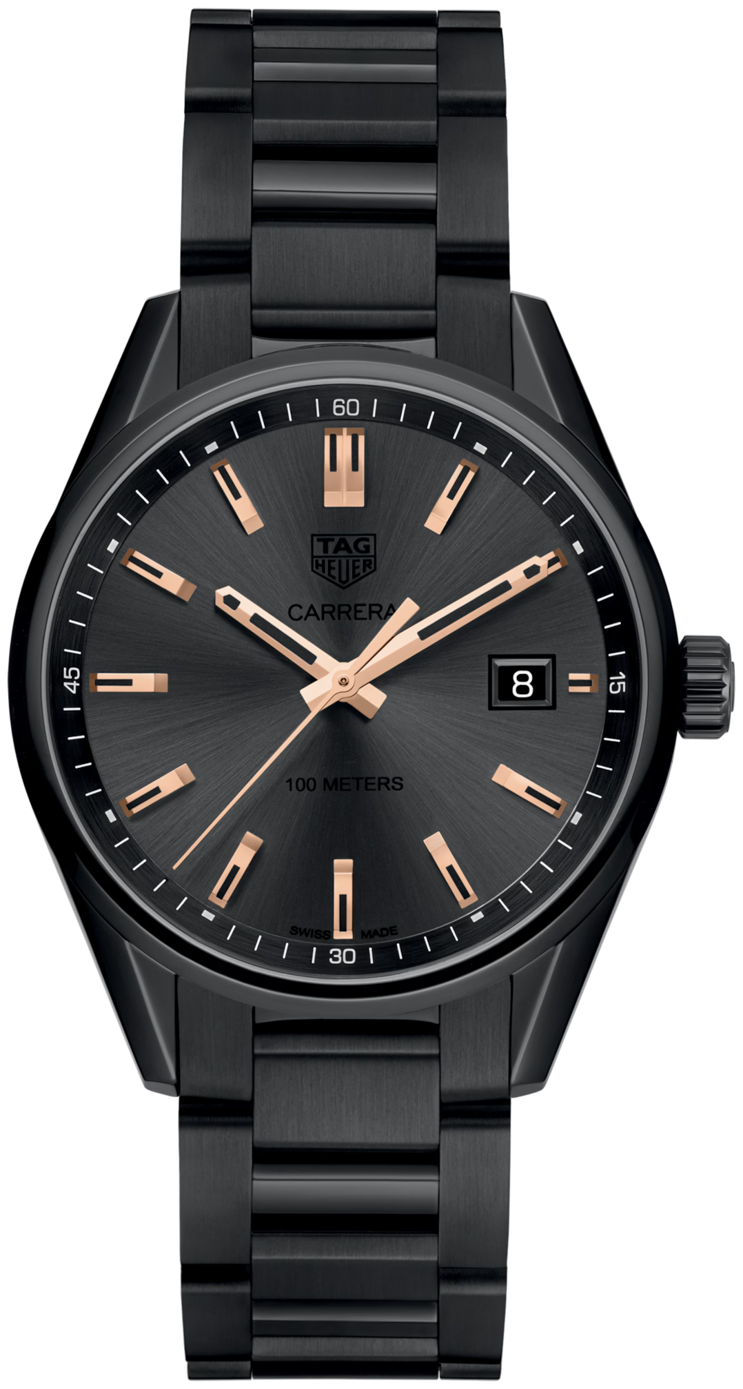 The TAG Heuer Carrera Special Edition Quartz (Model WAR1113.BA0602) is a sleek 39 mm men’s watch featuring a Black PVD coated steel case with a fixed steel bezel. Its black dial with polished hands and indexes is powered by a precise Swiss-made in-house Quartz movement. The fine-brushed and polished black steel bracelet completes this modern, sophisticated timepiece, perfect for everyday elegance.