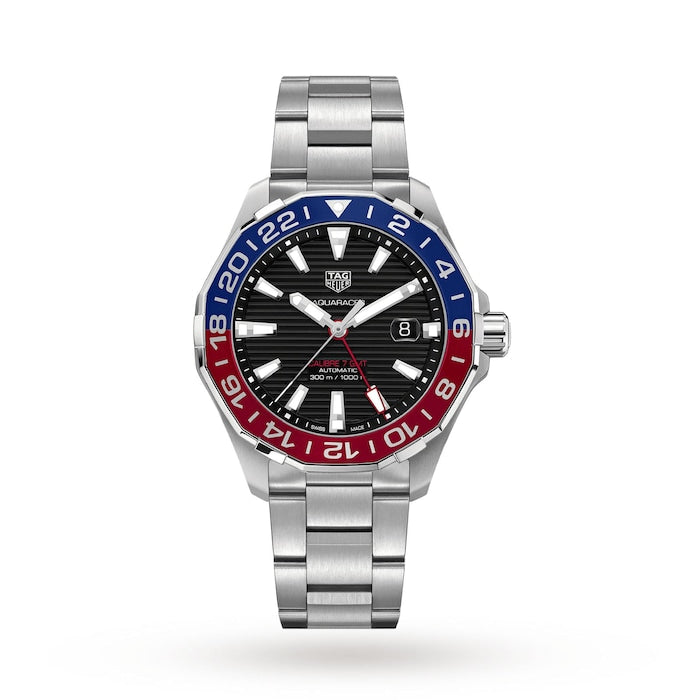 The TAG Heuer Aquaracer WAY201F.BA0927 offers a 43 mm stainless steel case, black sunray dial with refined accents, steel bracelet, automatic Calibre 5 movement and 300 m water resistance. True to Swiss luxury watchmaking, this model blends robust functional heritage with elegant materials, making it ideal for both high end everyday wear and professional dive readiness.