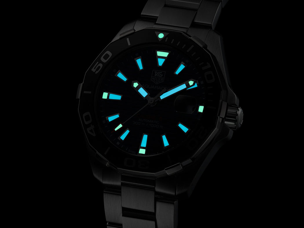 The TAG Heuer Aquaracer WAY211A.BA0928 is a high performance dive piece in a 41 mm stainless steel case, powered by the Calibre 5 automatic movement with approx. 38 hour reserve. Featuring a black dial, ceramic unidirectional bezel and 300 m water resistance, it fuses Swiss made craftsmanship with athletic elegance — perfect for those who demand both utility and refined style.
