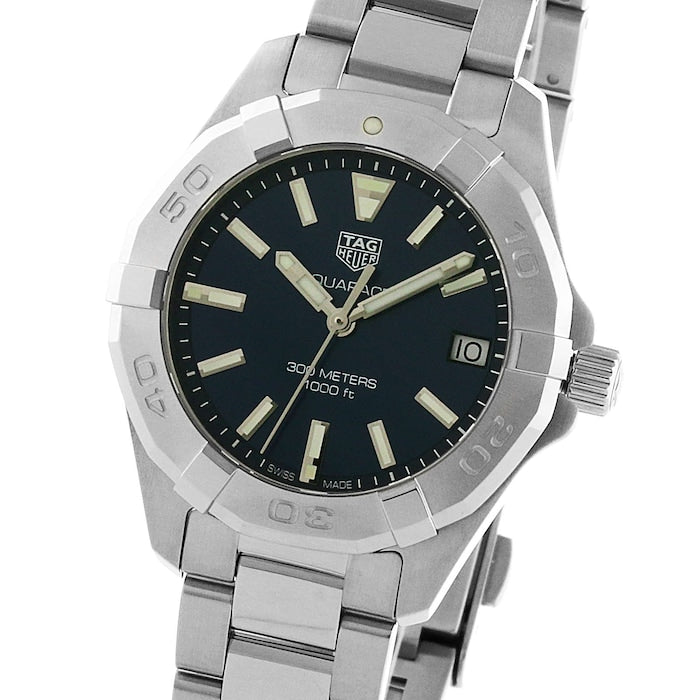 The TAG Heuer Aquaracer WBD1312.BA0740 delivers a 32 mm steel case with bold blue sun ray brushed dial, Swiss quartz movement and 300 m water resistance. Engineered with a unidirectional bezel and screw down crown, it brings sporty heritage and Swiss luxury into a sleek, feminine form—ideal for active lifestyles and refined taste.
