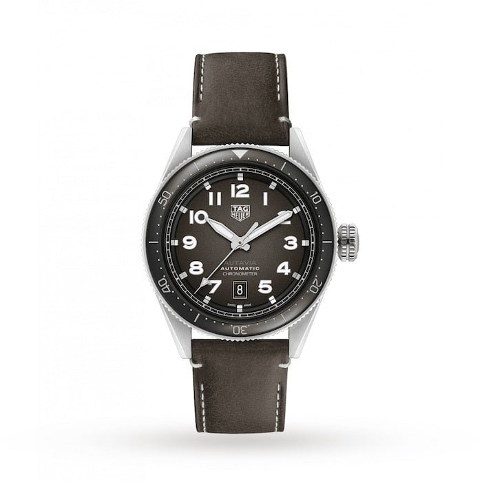 The TAG Heuer Autavia WBE5114.FC8266 showcases a 42 mm stainless steel case, vintage inspired smoked brown dial and bidirectional black ceramic bezel, powered by a COSC certified Calibre 5 automatic movement with 100 m water resistance. Its aviation and motorsport heritage shines through bold design cues and premium finishing — an elegant instrument of Swiss luxury for the modern explorer.