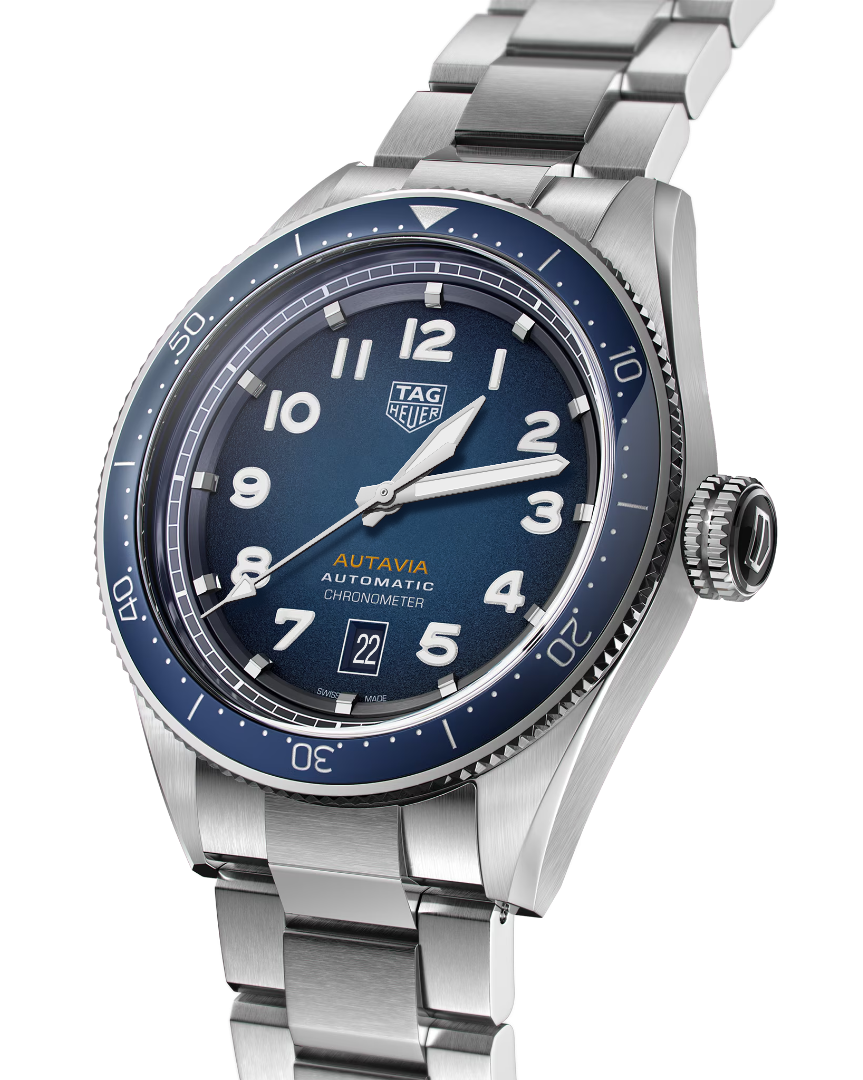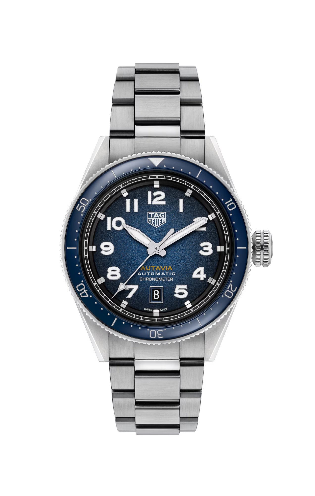 The TAG Heuer Autavia WBE5116.EB0173 is a rugged adventurer’s watch with design cues inspired by airplane and race-car dashboards. Its 42 mm steel case frames a blue smoked dial that remains clear in challenging conditions. Powered by the COSC-certified Calibre 5 automatic movement, this timepiece offers precise hours, minutes, and seconds. Finished with a silver steel bracelet and steel & ceramic turning bezel, it balances durability and heritage style.