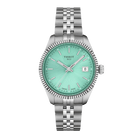 The Tissot Ballade Quartz (Model T156.210.11.091.00) is crafted to elevate your style for truly special moments. Its delicate light green guilloché dial with sunbeam rays reflects light beautifully, adding depth and elegance. The fluted bezel embodies traditional Swiss watchmaking craftsmanship, while the interchangeable quick-release bracelet offers maximum versatility. Powered by a Swiss quartz movement with end-of-life indicator, this timepiece combines timeless elegance with reliable performance.