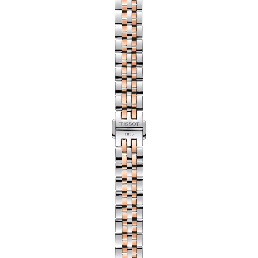 The Tissot Le Locle Automatic (Model T41.2.183.33) embodies timeless Swiss elegance. Named after Tissot’s home in the Jura Mountains, the Le Locle collection is renowned for classical chic and refined details. This 25.3 mm stainless steel case with rose gold PVD coating houses a Swiss automatic movement with up to 48 hours power reserve. The silver dial features Roman numerals and the signature Le Locle script, complemented by a scratch-resistant sapphire crystal. The grey and rose gold PVD-coated bracelet with butterfly clasp offers versatile, elegant wear for both daytime and evening occasions.